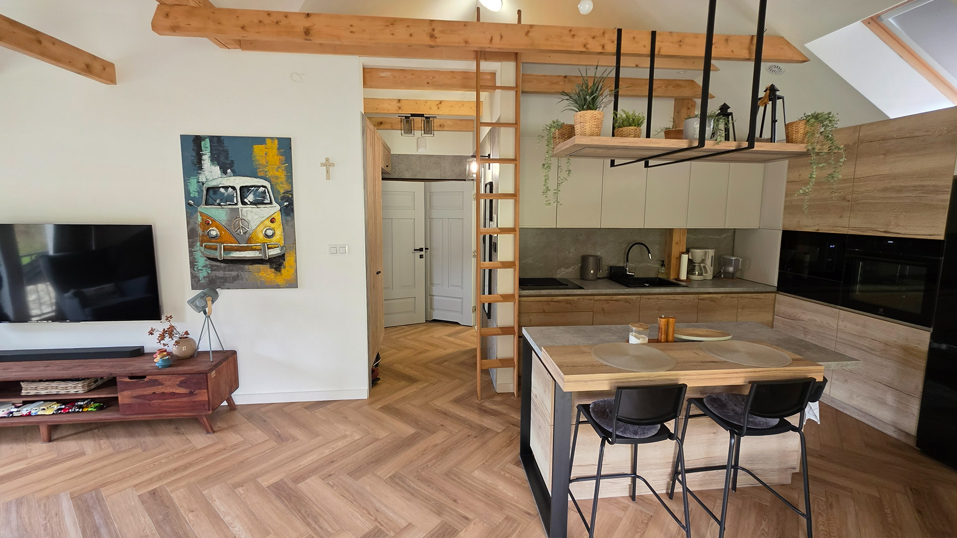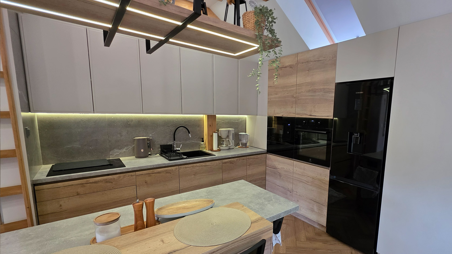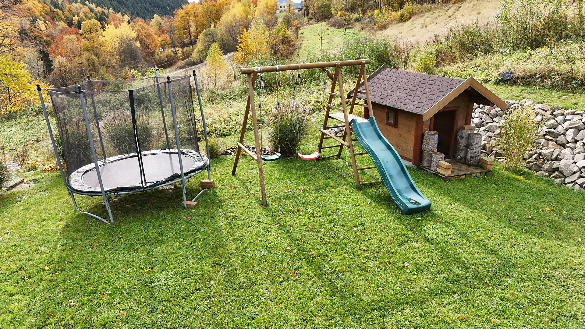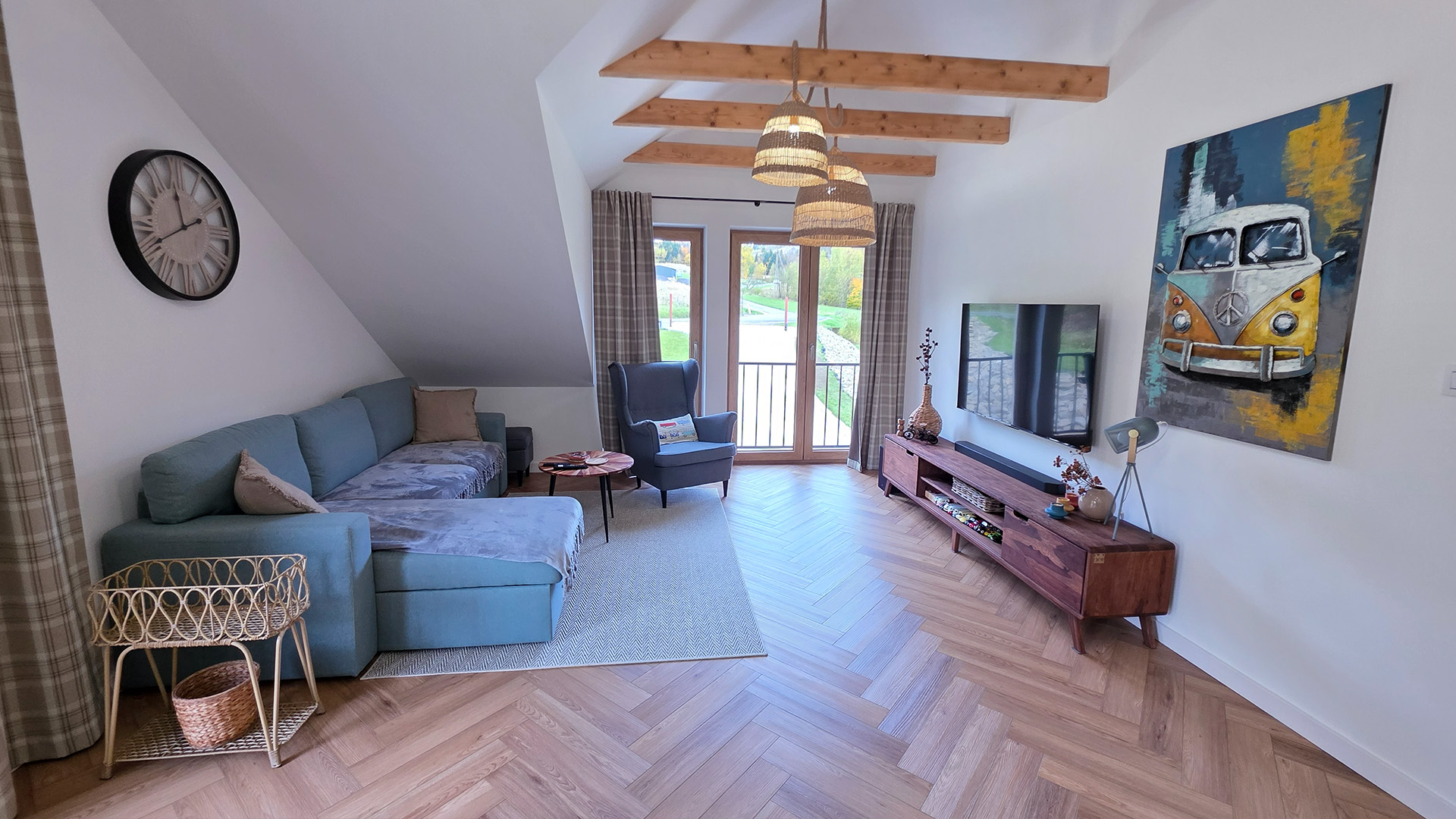 Czas zobaczyć Dom za Górą na własne oczy! Poniższa galeria prezentuje bardzo wysoki standard wykończenia każdego pomieszczenia oraz piękno otoczenia. Przygotowaliśmy dla Państwa szczegółowe ujęcia wnętrz, ogrodu, paleniska i najbliższej okolicy.